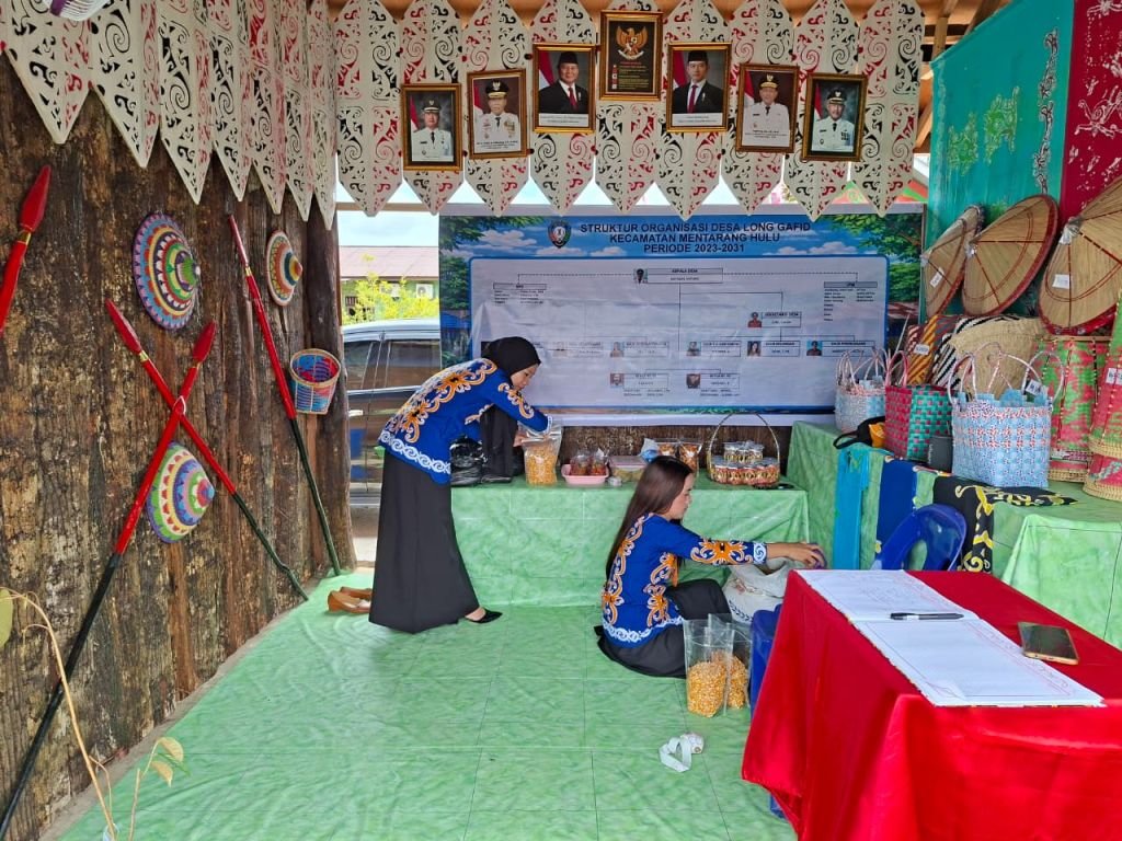 Persiapan dan penataan berbagai produk unggulan di stan Desa Lung Gafid.